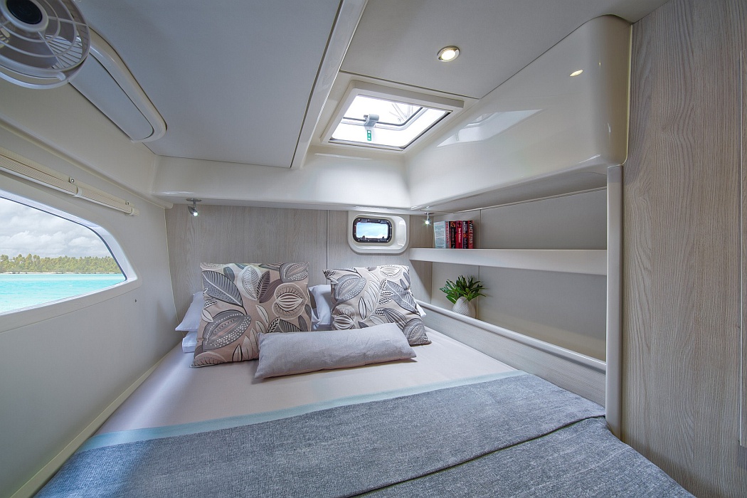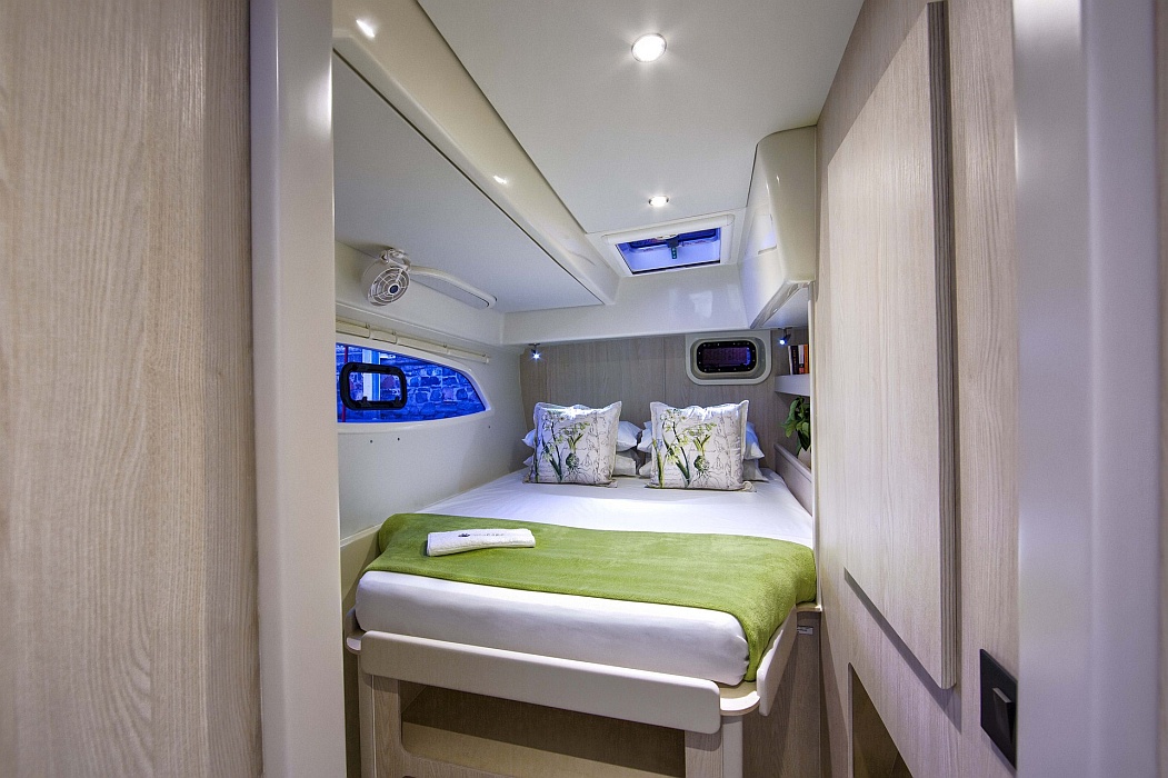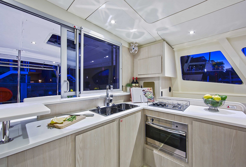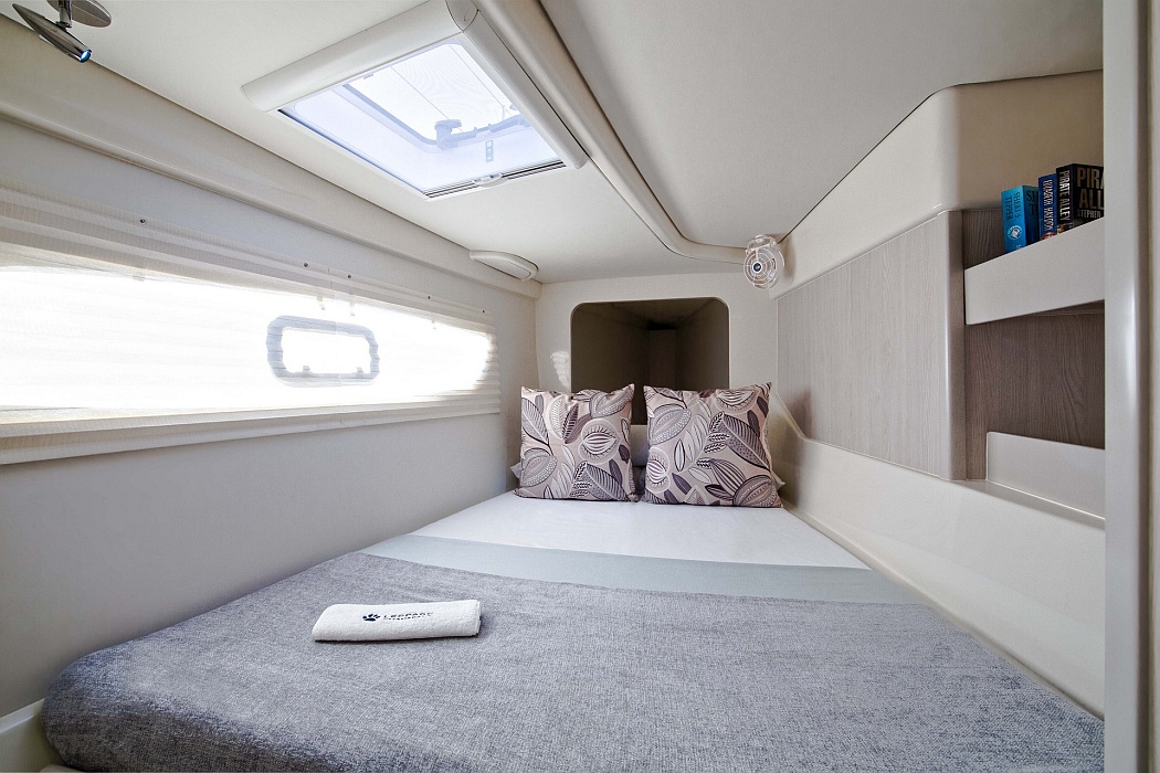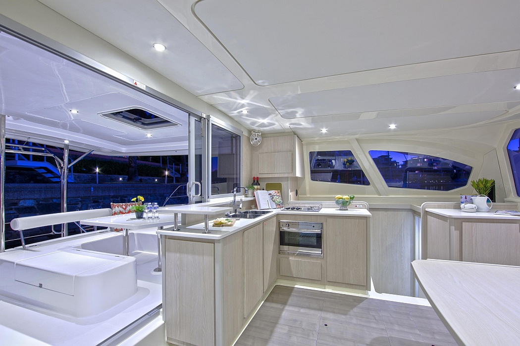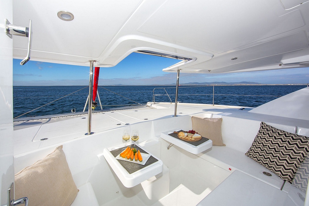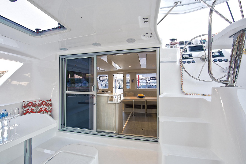 Jedną z wielu interesujących opcji, jakie oferuje ten jacht jest przedni kokpit bezpośrednio połączony z salonem. Na nowoczesnych katamaranach przedni kokpit jest konwencjonalny, natomiast Leopard 44 dla odmiany oferuje usztywniony daszek zapewniający ochronę nad przednim oraz rufowym kokpitem, a także zapewnia komfort przestrzeni użytkowej znajdującej się na pokładzie.