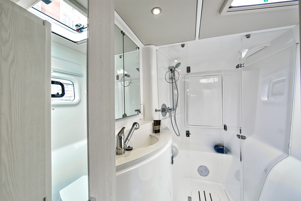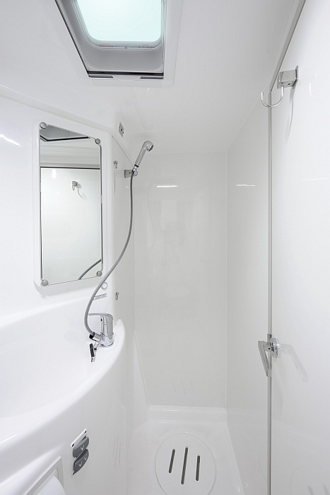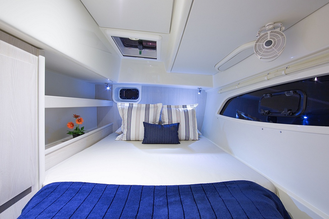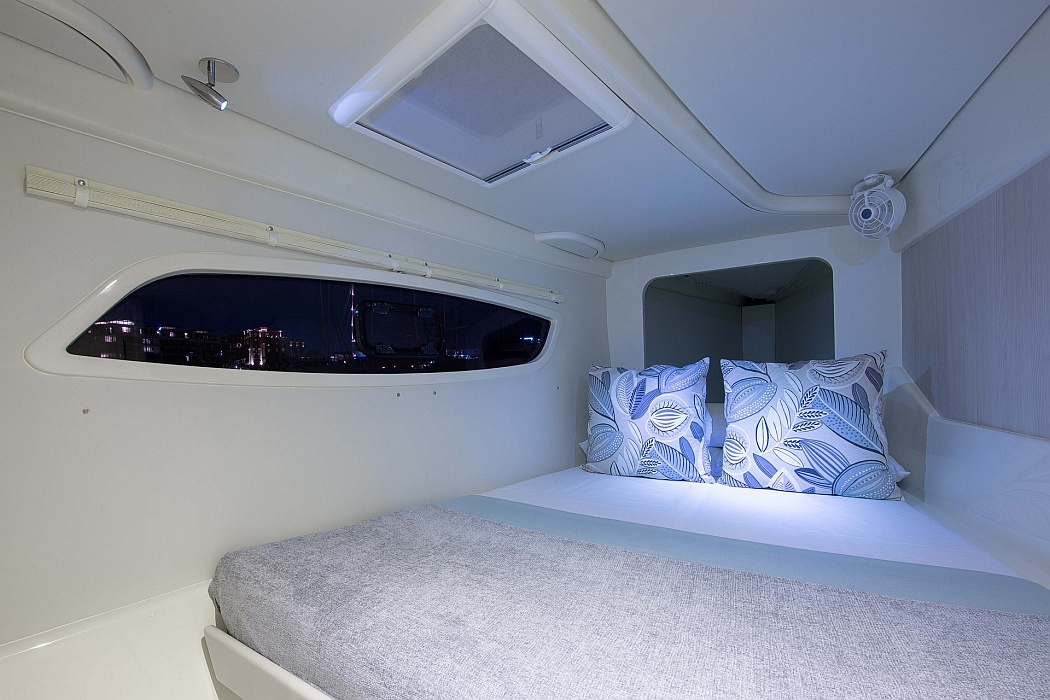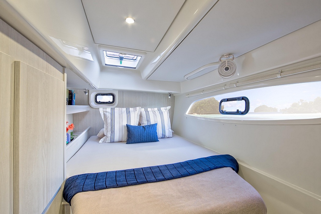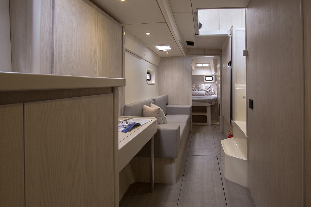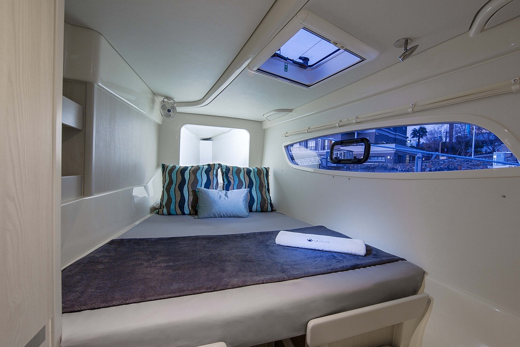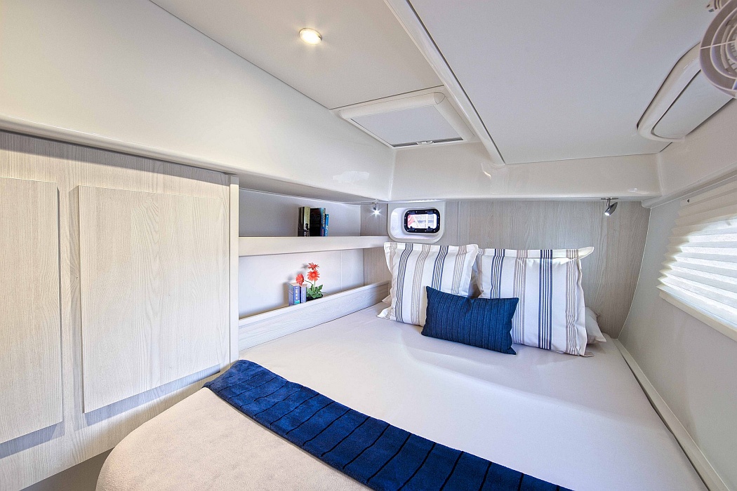 Jedną z wielu interesujących opcji, jakie oferuje ten jacht jest przedni kokpit bezpośrednio połączony z salonem. Na nowoczesnych katamaranach przedni kokpit jest konwencjonalny, natomiast Leopard 44 dla odmiany oferuje usztywniony daszek zapewniający ochronę nad przednim oraz rufowym kokpitem, a także zapewnia komfort przestrzeni użytkowej znajdującej się na pokładzie.