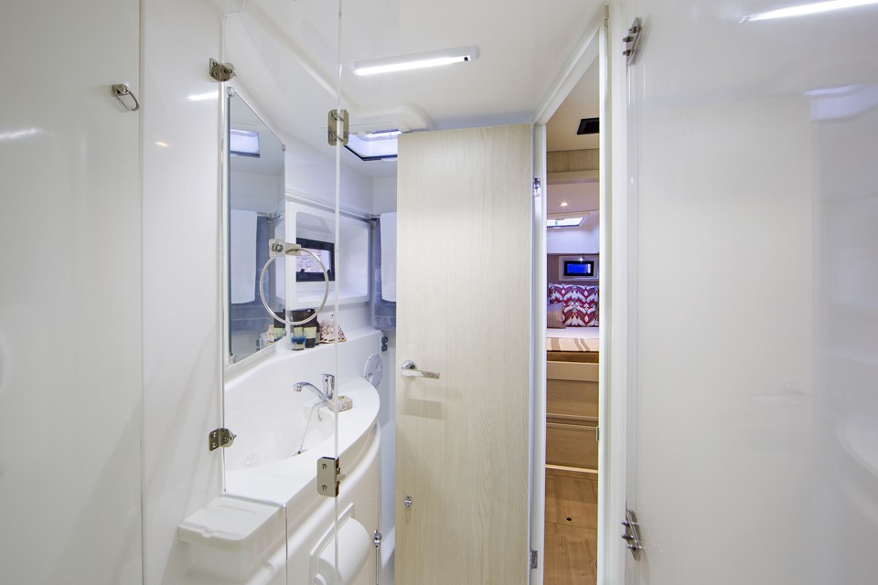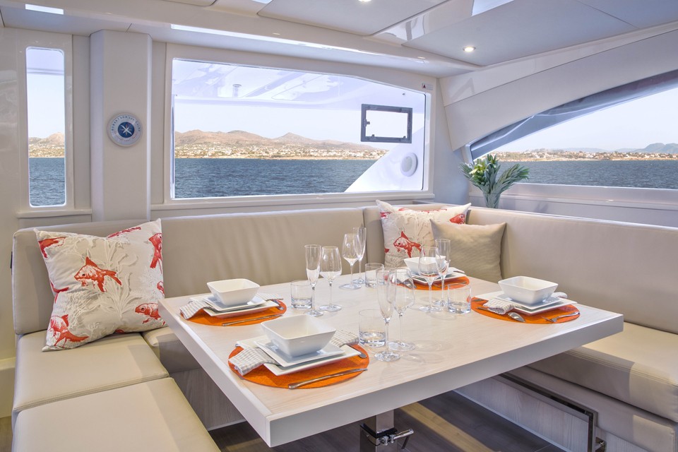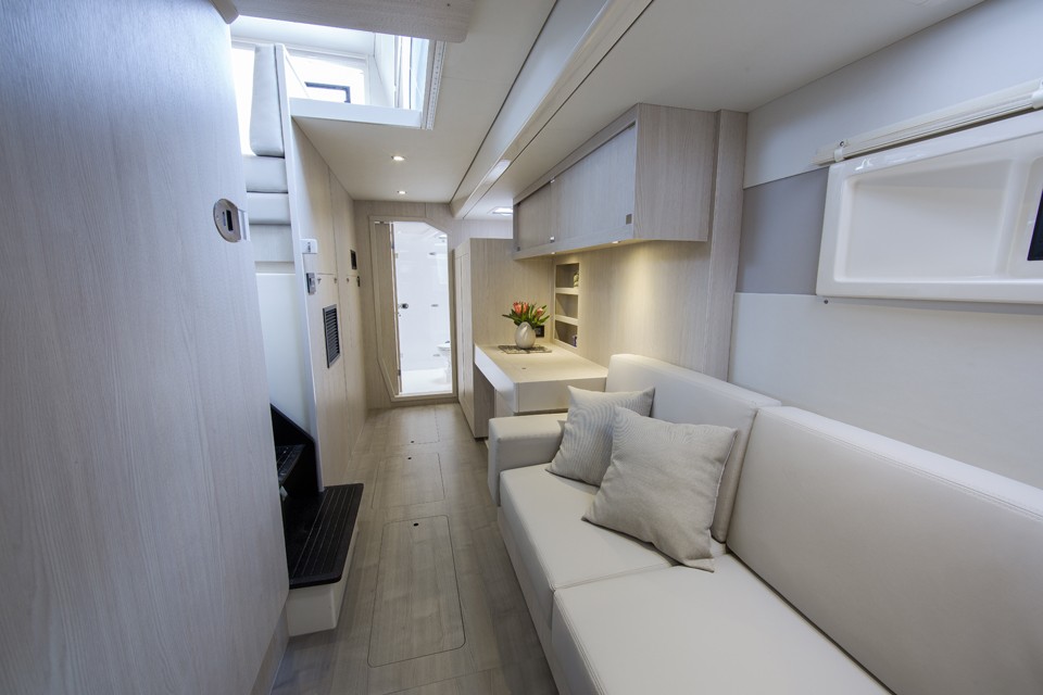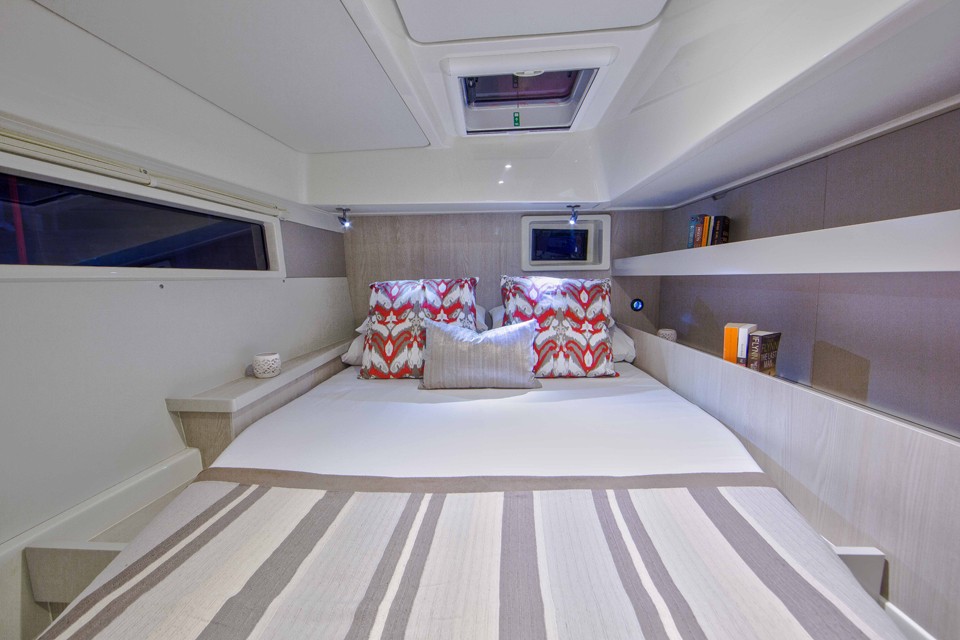Wnętrze katamaranu Leopard 48 jest nie tylko piękne, ale również praktyczne. Kambuz wyposażony jest w najlepsze w swojej klasie urządzenia, zapewnia przestronne miejsce do przygotowywania posiłków i wiele innych udogodnień. Katamaran ten oferuje również mnóstwo przestrzeni wewnątrz. Luksusowe wnętrze sprawia, że żegluga jest nie tylko świetną zabawą, ale również jest bardzo wygodna. Jego nowoczesna linia i otwarta zabudowa ustanowiły nowe standardy dla nowoczesnych katamaranów napędzanych silnikiem.