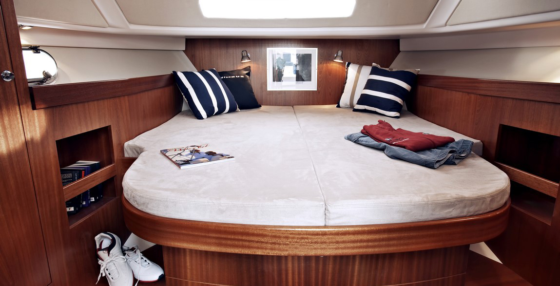 Pięknie wykończona stolarka w salonie i kokpicie emanują wspaniałym rzemiosłem i jakością. Duża sofa w kształcie litery „U” pomieści od 6 do 8 osób